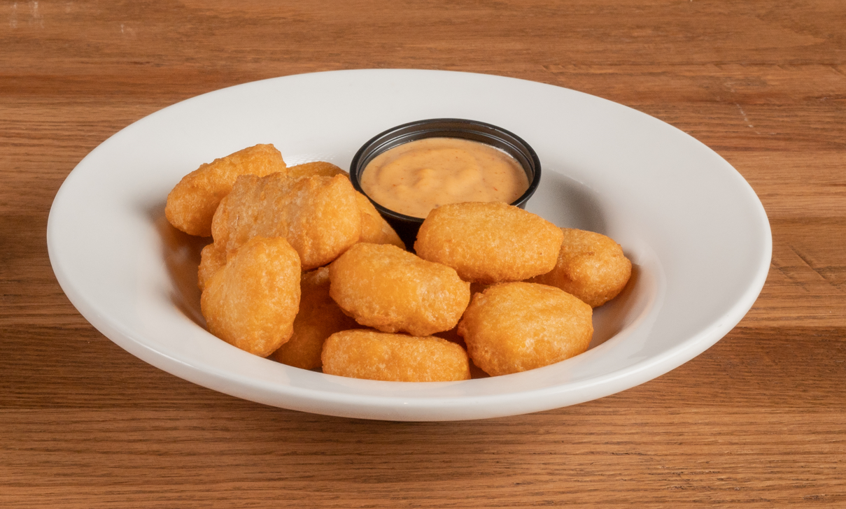 Fresh crispy hand breaded Wisconsin cheddar cheese curds fried and served with Anchor Bar homemade pasta sauce.