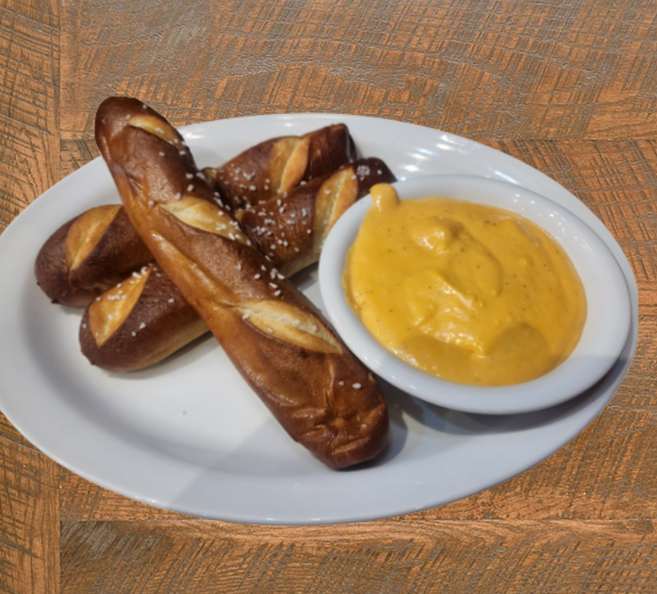 (3) Soft pretzel sticks served with beer cheese sauce.