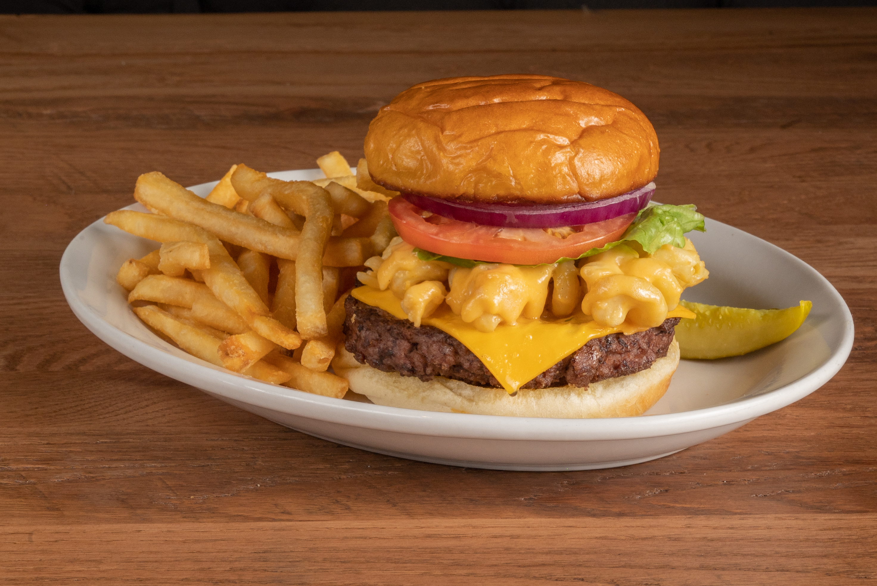 Our fresh Angus beef patty char grilled and topped with a heaping scoop of our creamy mac & cheese, lettuce, tomato and red onion on a brioche roll.