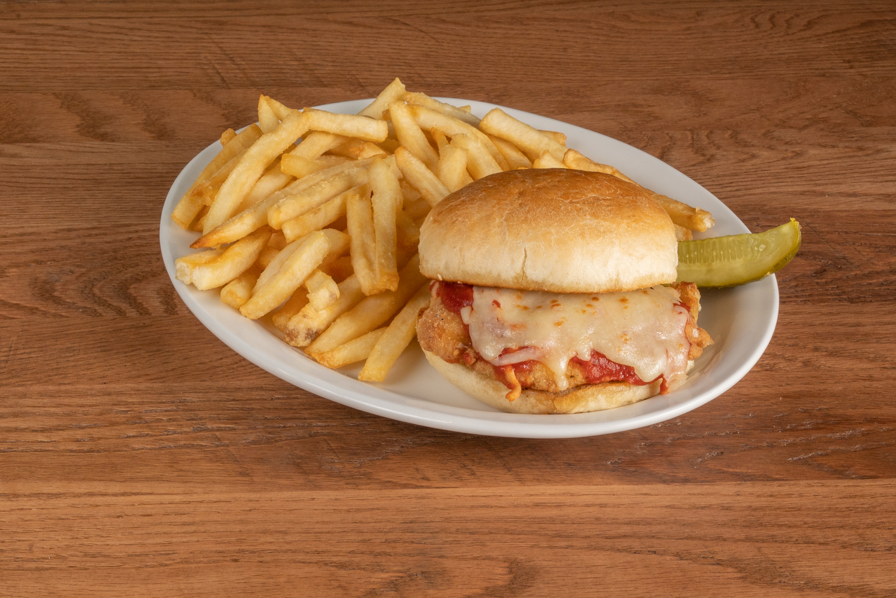 Tender chicken breast lightly breaded and fried, topped with our Anchor Bar homemade pasta sauce, smothered in mozzarella and parmesan cheese on a buttered toasted roll.